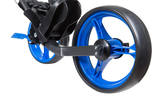 Le chariot Birdie Evo 3 roues est équipé d’une poignée en mousse ergonomique, d’un porte-carte qui comprend des compartiments pour les balles, les tees et les crayons, ainsi que de trois positions de poignet possibles pour plus de confort. De plus, il dispose d’un frein à pied robuste pour plus de sécurité.
