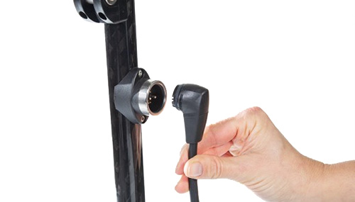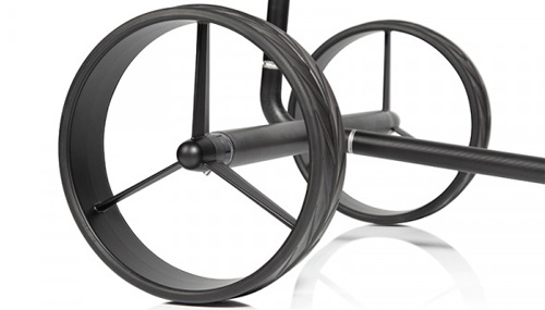 Avec des moteurs intégrés dans l’axe, la petite batterie se positionne discrètement dans le sac de golf.