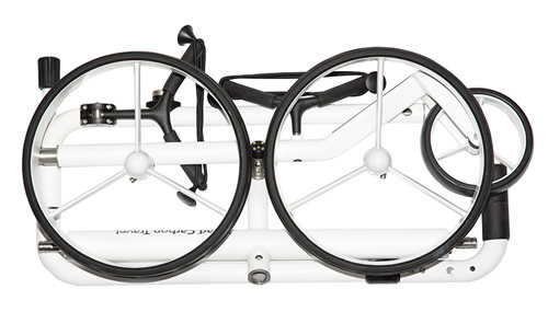 Le chariot se démonte de façon très compacte et tient aisément dans n’importe quel coffre de voiture de sport. Une fois démonté, il peut également être mis avec un sac de golf dans une housse de voyage. Démontable en 3 parties, rangement ultra-compact. Dimensions : 65x35x15 cm