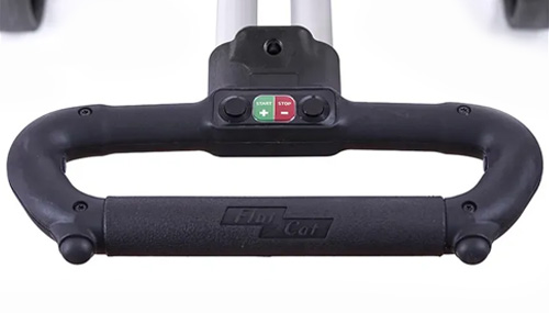 Côté contrôle, la commande à deux boutons facilite l’utilisation au maximum. En appuyant sur le bouton de démarrage, le chariot passe en mode veille et se met en mouvement en douceur. Le bouton d’arrêt, quant à lui, déclenche un freinage sûr et efficace, stoppant complètement l’appareil.