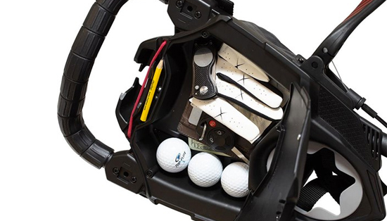 Ultra-stable grâce à ses trois grandes roues tout-terrain, il offre une excellente maniabilité sur tous les types de parcours. Sa poignée ergonomique est ajustable en hauteur pour s’adapter à toutes les morphologies, et elle intègre un porte-accessoires avec des rangements pratiques pour les balles, tees, cartes de score et boissons.