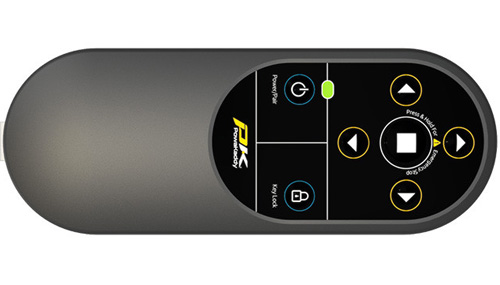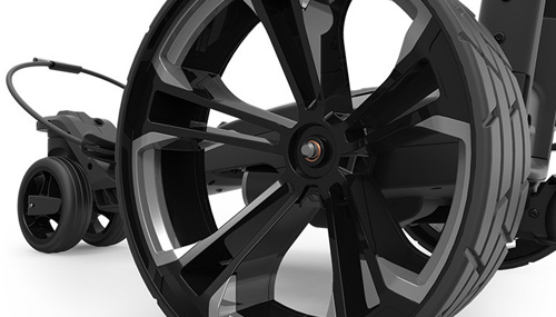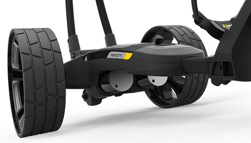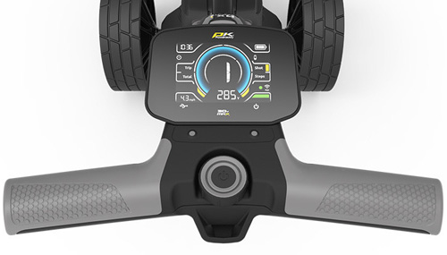 Le système de freinage électronique à détection automatique du RX1 ralentit automatiquement le chariot lors des descentes sur des pentes raides. Les sangles intégrées maintiennent fermement votre sac de golf en place. La poignée, qui intègre l’écran, est également très confortable à manier. Elle est réglable en hauteur pour s’adapter à chaque joueur. Juste en dessous de la poignée se trouve un support de rangement pratique pour la télécommande, qui se recharge facilement via le port USB intégré. Ce même port USB peut également être utilisé pour brancher votre téléphone.