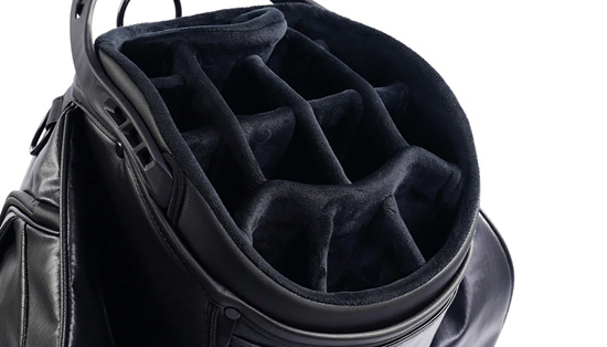 • Organisation 14 compartiments avec séparateurs doublés en velours pour protéger chaque club.