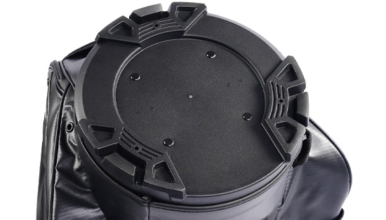 Base circulaire de 24 cm avec encoche adaptée aux chariots, offrant une stabilité maximale sur la plupart des chariots de golf.